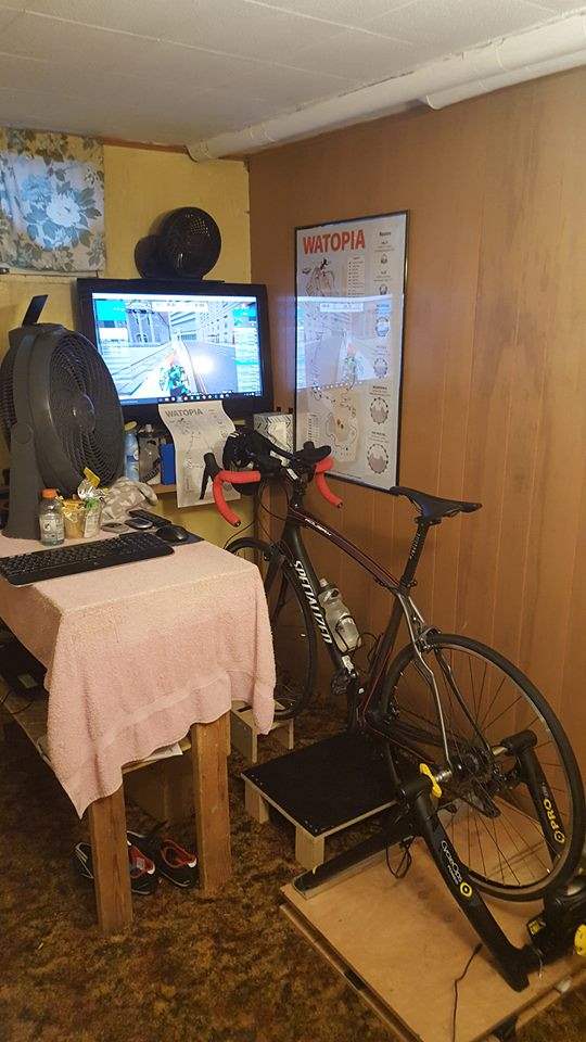 If I am alone, I will usually run Zwift on my iPad Pro 9.7, and use an Apple TV connection to display it on the big screen LCD. If I want to do a Trainerroad workout, I also will run that on a separate laptop just for wattage guidance; I don’ feel the need to record every single workout I’ve done anymore.
