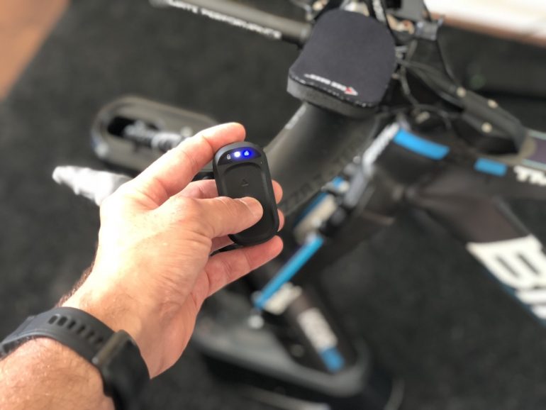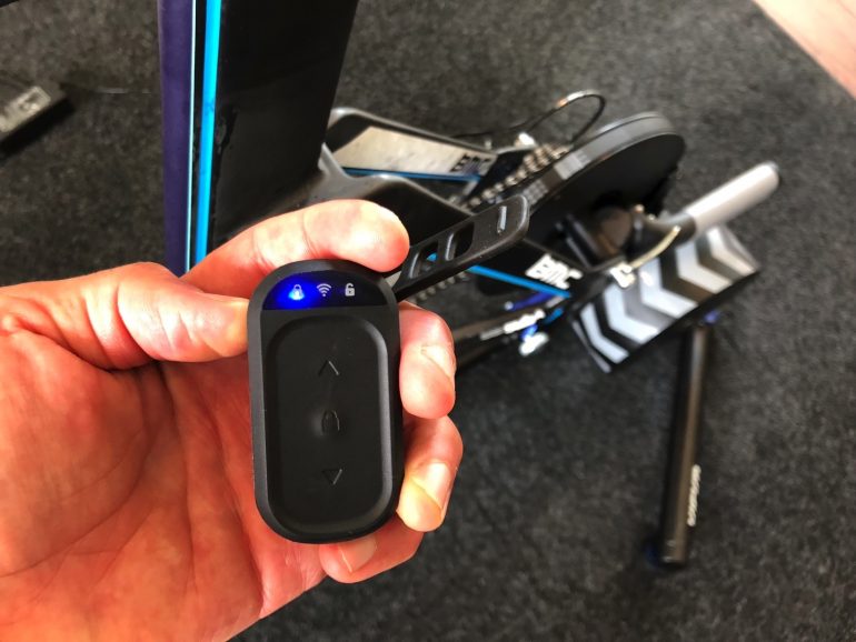 The KICKR CLIMB has two different modes, free and locked mode (AKA manual control). The free mode is what you want to use if you want the CLIMB to respond to gradient changes. However, if you just want to ride and not interested in changing gradient, you want to use the locked mode. To switch modes, tap the center lock button on the KICKR CLIMB remote to switch between modes – indicated by the remote’s blue LED moving from the locked side to the unlocked side or vice versa.
