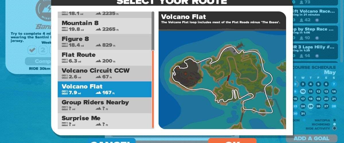 - May missions added. Finish the prescribed ride each week to complete the mission. Completed mission badges will eventually show up in your achievements list later this summer.