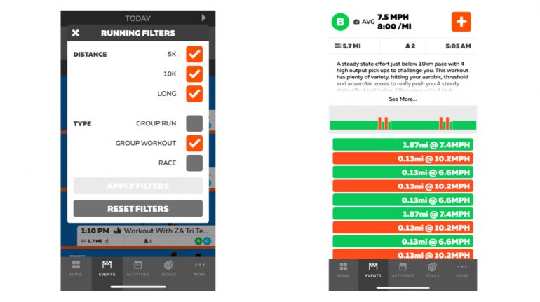 Also, for running, they added Group Workout as an option to filter on. Also, the same workout details is also now available for running. Just tap on the workout and you will see each block with the effort required based on paces entered in your profile.